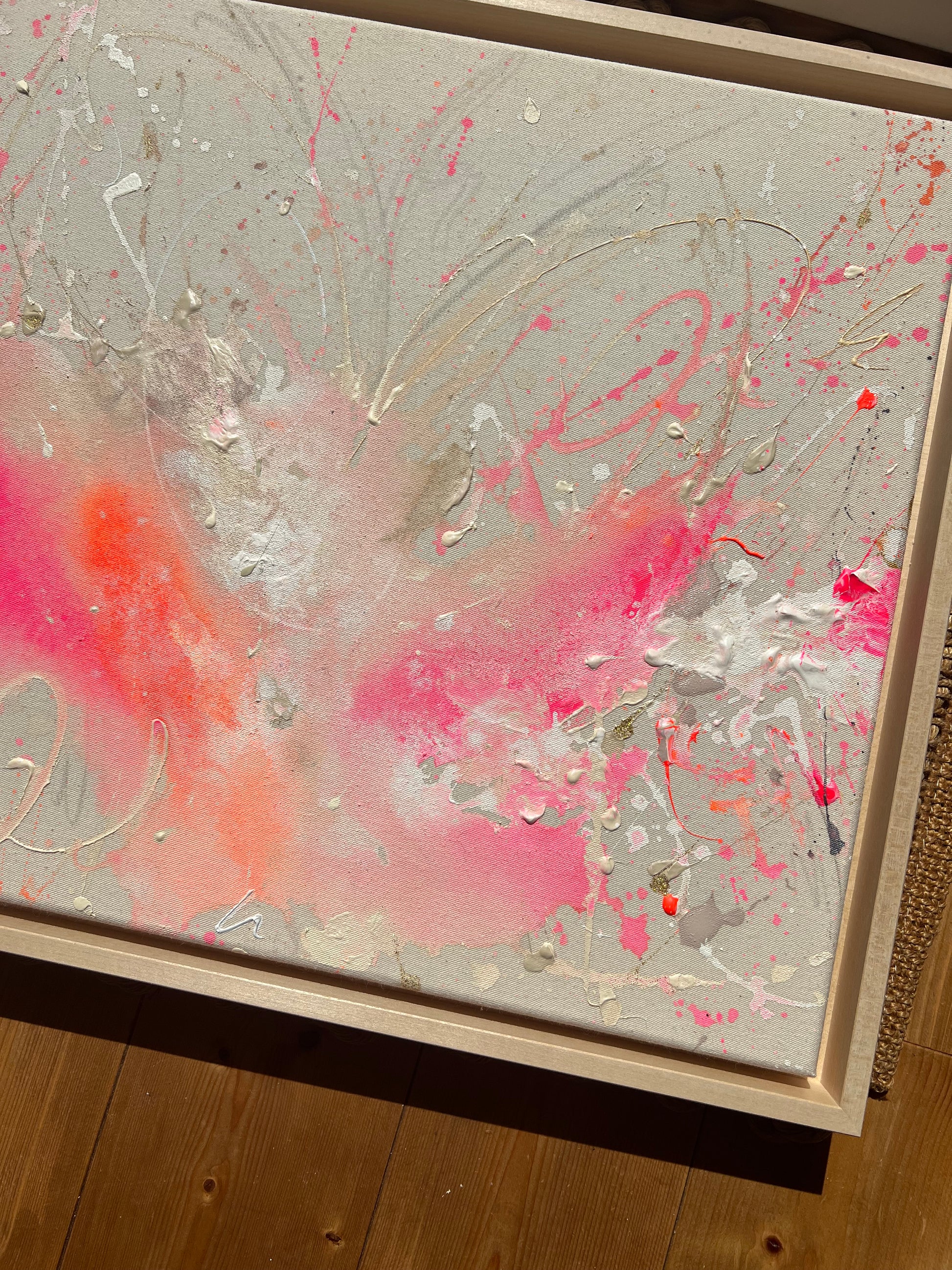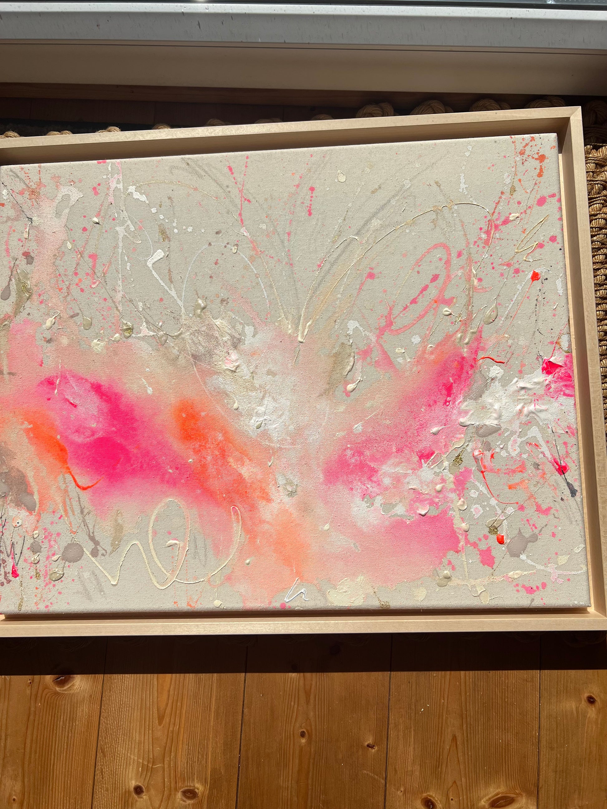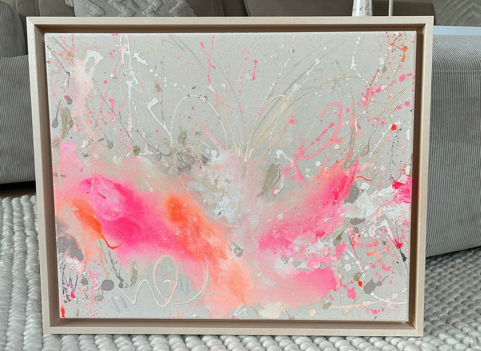Handgemaltes Acrylgemälde auf Leinwand, inkl. Schattenfugenrahmen in Lindenholz
