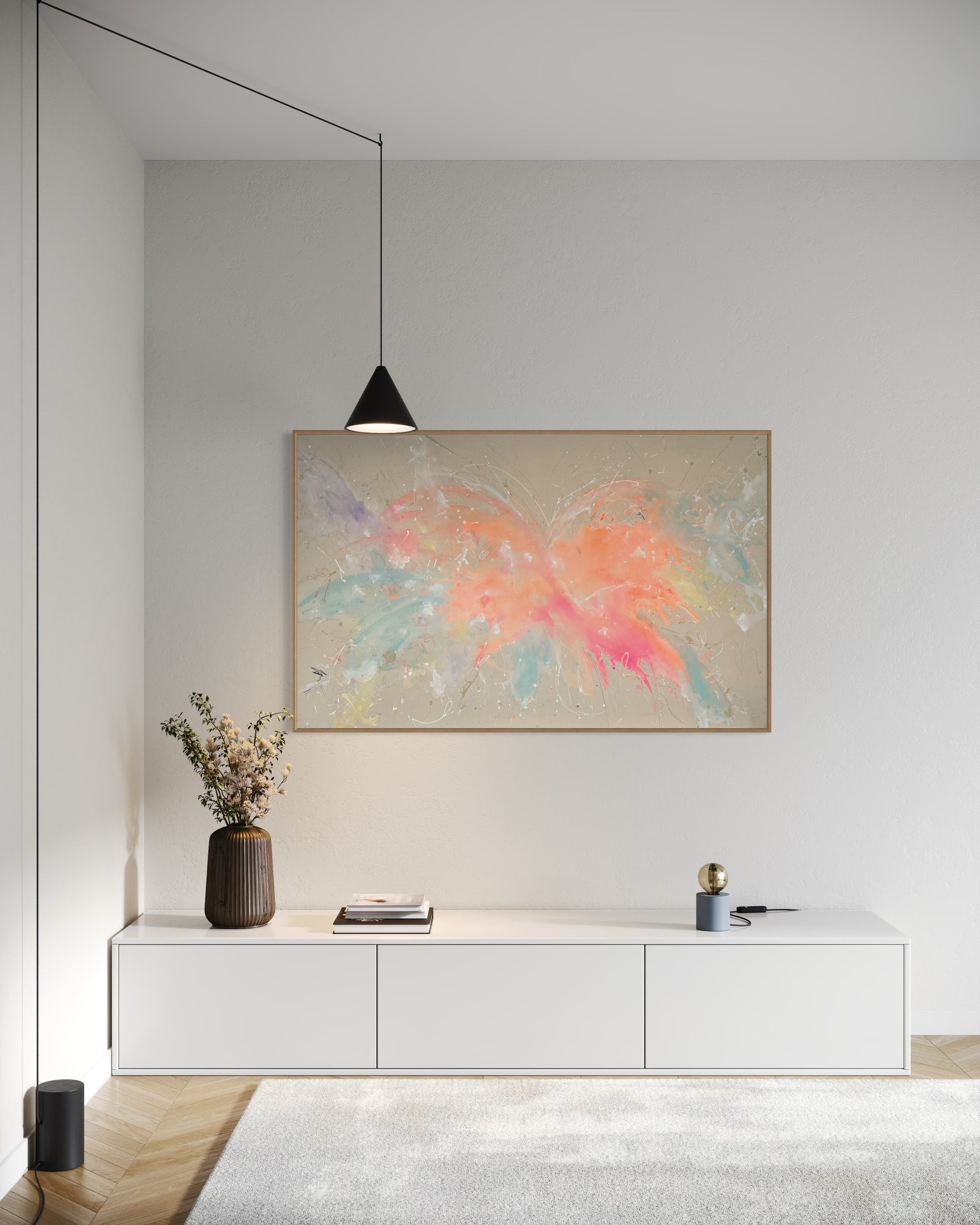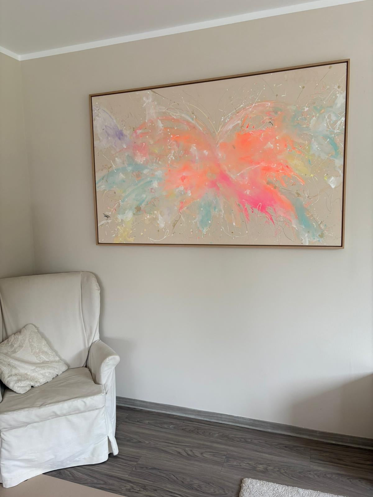 Danke für das Vorbeibringen von meinem Bild! Es passt super, an die vorgesehene Stelle. Dein gemaltes Bild sieht absolut fabelhaft aus. Die Leichtigkeit, die das Bild selbst ausstrahlt, ist es so schön wärmend und gleichzeitig übertragend.