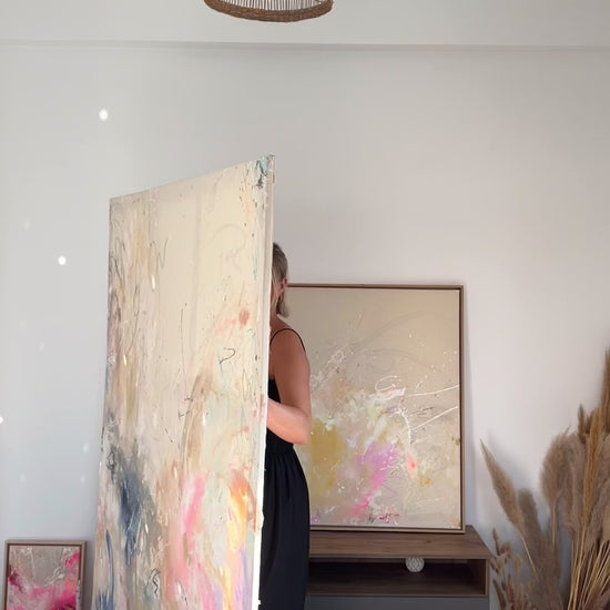 Handgemaltes Acrylgemälde auf Leinwand, inkl. Schattenfugenrahmen aus Eichenholz oder in weiß